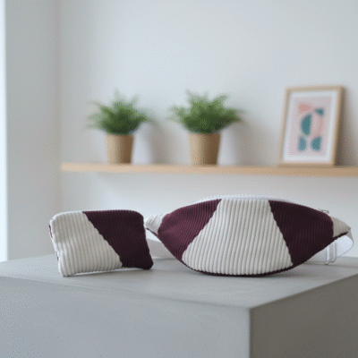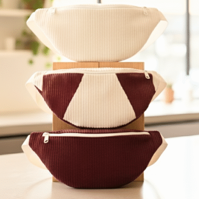 Nuestra riñonera de pana en beige y color burdeos combina suavidad, calidez y estilo en un diseño único.