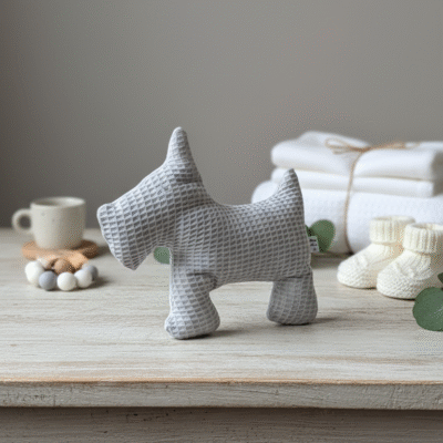 Estos peluches de perritos están hechos a mano con mucho cariño y cuidado en cada detalle. Cada uno lleva un cascabel que suena muy suave, perfecto para que los peques jueguen y se diviertan sin ruidos molestos. 🎶
