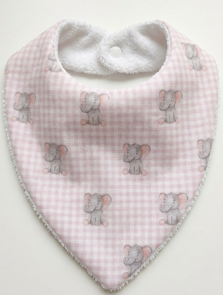 Babero Bandana – Elefantes rosa vichy