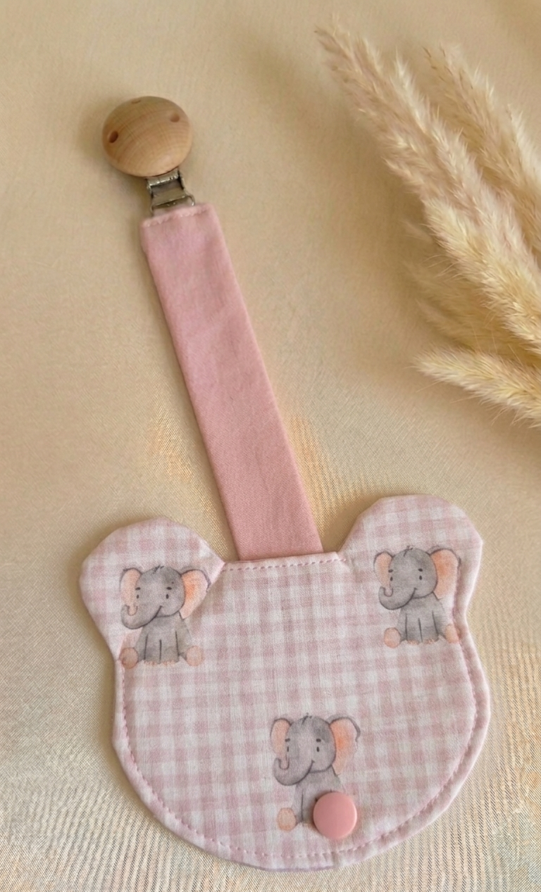 Chupetero con funda integrada · Colección Elefantes Rosa